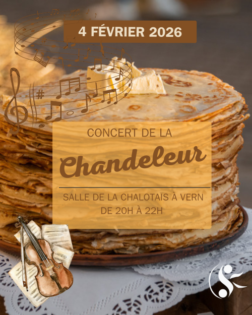 Le 4 février, de 20h à 22h, La Chalotais vous invite à célébrer la Chandeleur autrement, avec un concert chaleureux réunissant l’Orchestre d’Harmonie, l’ensemble Petites Cordes et l’harmonie junior.